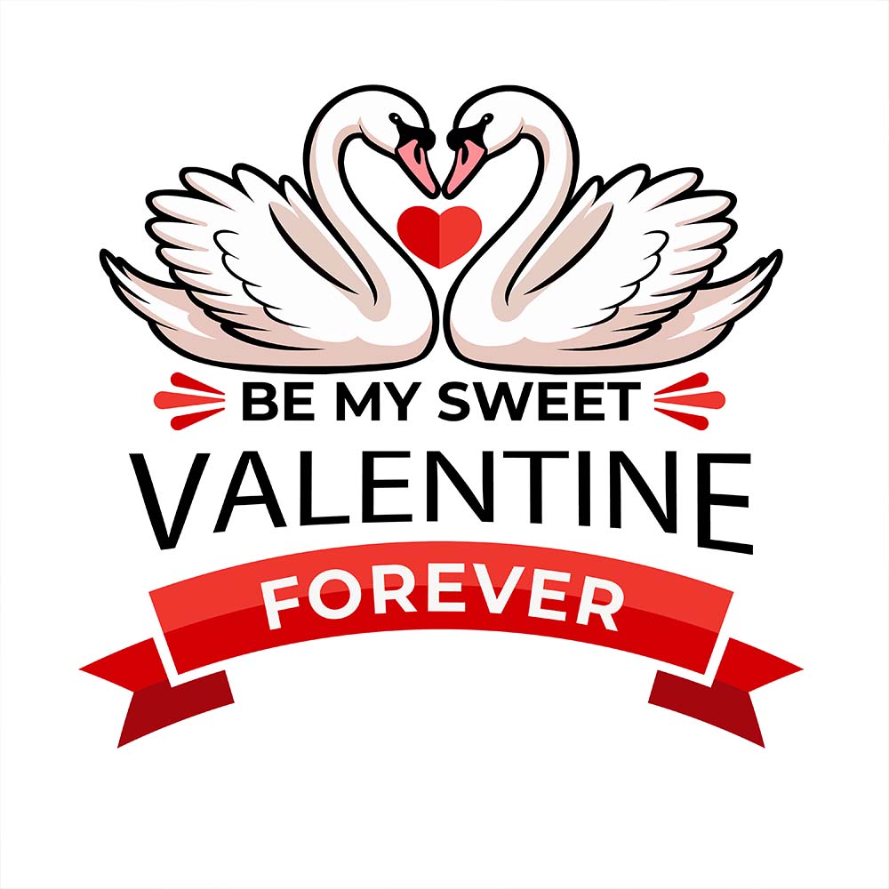 Be My Sweet Valentine Forever Vector is a romantic Valentine vector design created for professional printing companies. This Love vector design features a graceful couple forming a heart shape with elegant wings, paired with bold Valentine typography and a ribbon element. The Valentine design is suitable for t shirt printing, mugs, stickers, gifts, apparel, greeting cards, and promotional products.